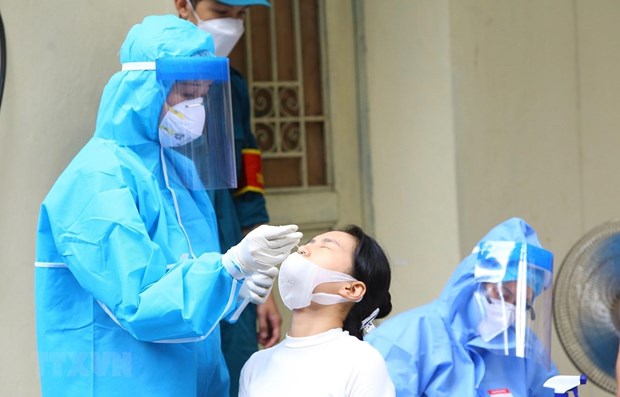 A resident in Hanoi has sample taken for COVID-19 testing (Photo: VNA) including 5,367 domestic and nine imported cases, in the past 24 hours to 5pm