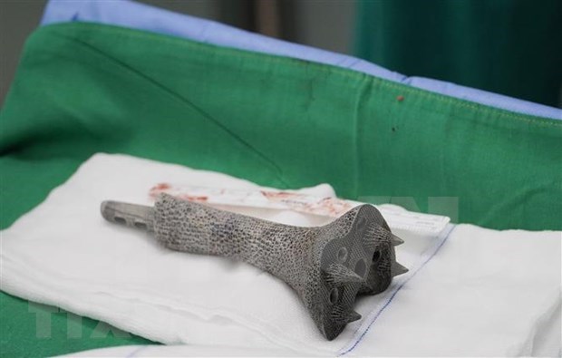 Cho Ray Hospital successfully applies new technique in bone surgery hinh anh 1The 3D honeycomb-shaped titanium alloy piece which is successfully transplanted into the leg of a patient suffering from bone cancer from Quang Ngai by HCM City’s Cho Ray Hospital. (Photo: VNA)