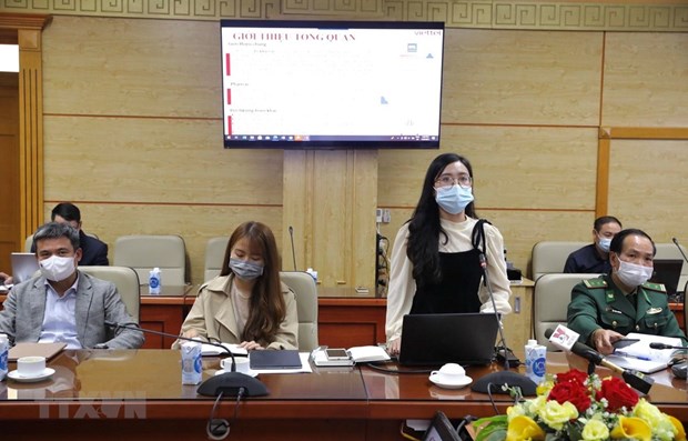 A representative of the software developer gives an introduction of the entry management software (Photo: VNA)Hanoi (VNA) – The on January 28 provided