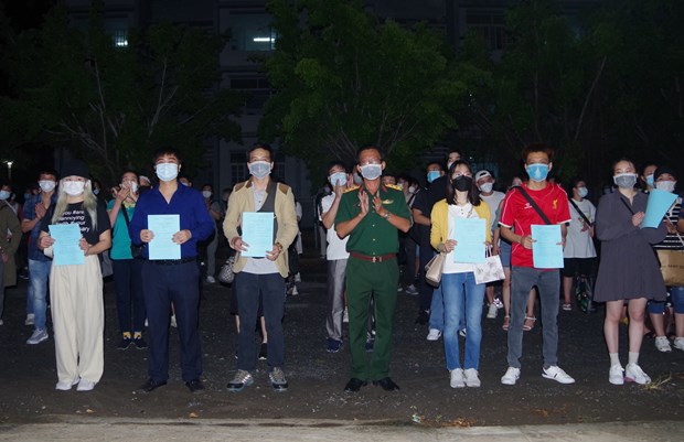 Vietnamese citizens receive certificates of completing their concentrated period in Bac Lieu province. (Photo: VNA) Hanoi (VNA) – Vietnam recorded three new cases of , all
