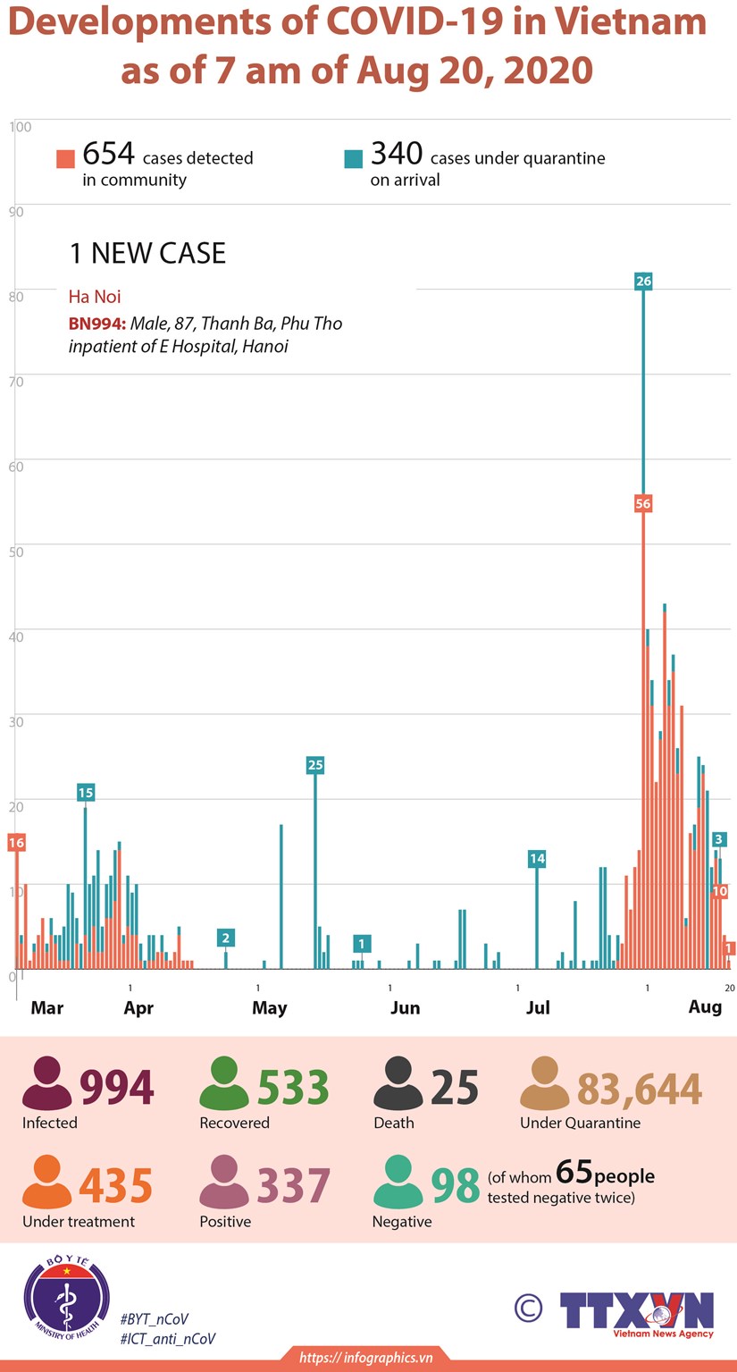 Aug 03 0 Developments of COVID-19 in Vietnam as of 7 am of Aug 20, 2020 Posted by admin in News Source: VietnamPlus