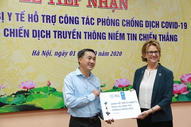 Health Ministry receives donated medical supplies for COVID-19 fight hinh anh 1UNDP donates 15 Ohmni Robots to the Ministry of Health to help protect frontline doctors and nurses in central provinces’ hospitals from COVID-19 and other infectious diseases. (Photo: UNDP)