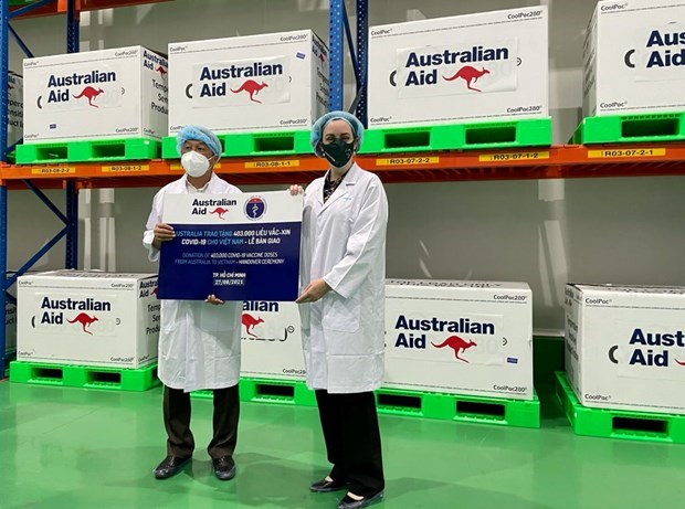 The Ministry of Health receives the batch of vaccine donated by the (Photo: VNA) HCM City (VNA) – The on behalf of the Australian Government handed over 403,000 doses of AstraZeneca vaccine to Vietnam on August 27. The delivery of...