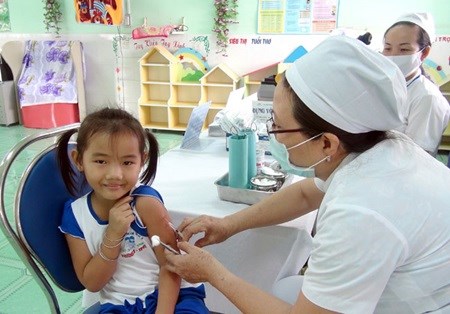 A medical worker vaccinates a girl at the Kindergarten No 8 in Vinh Long city, Vinh Long province. (Photo: VNA)Six-in-one vaccines aren’t available and the shortage should last until next year, Ministry of Health’s Department Head Tran Dac Phu said on August 4.